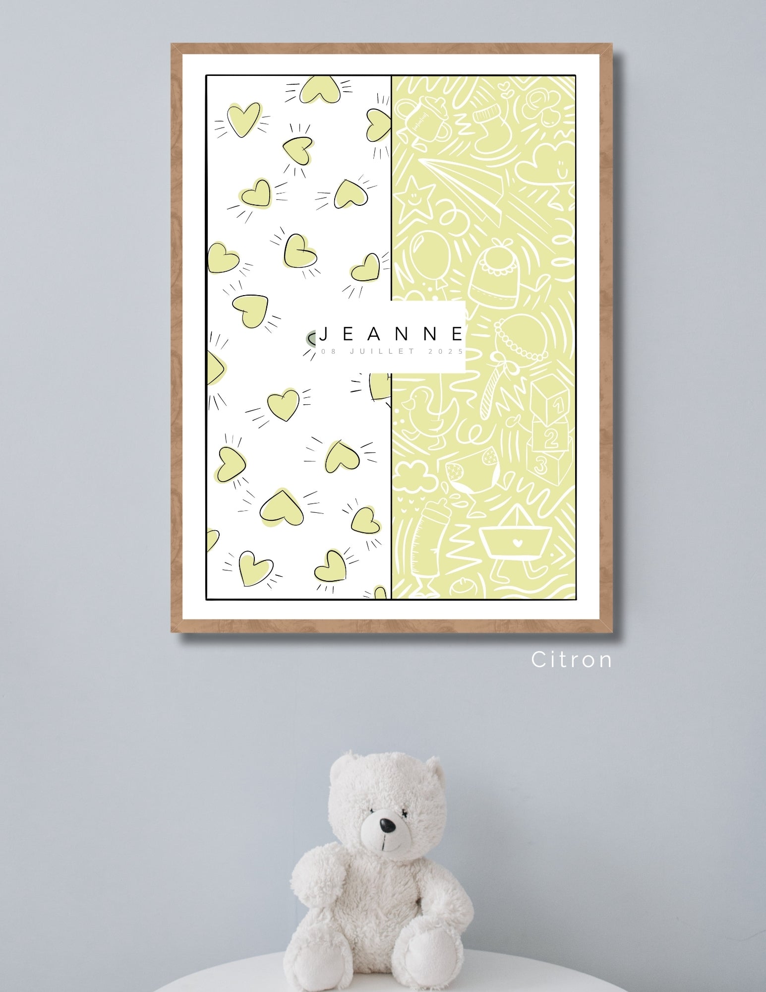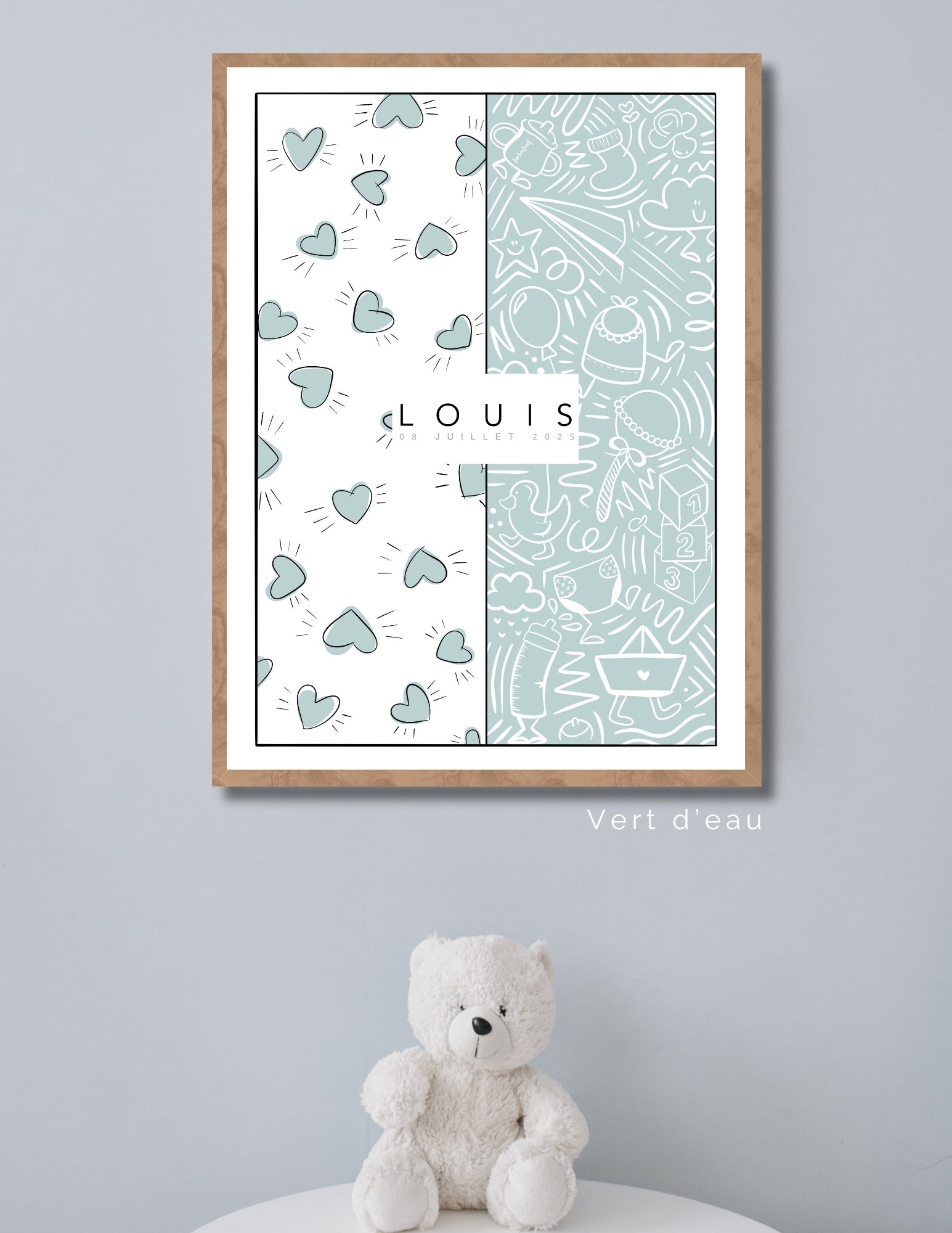 - Affiche personnalisable au prénom de l’enfant avec ou sans la date de naissance